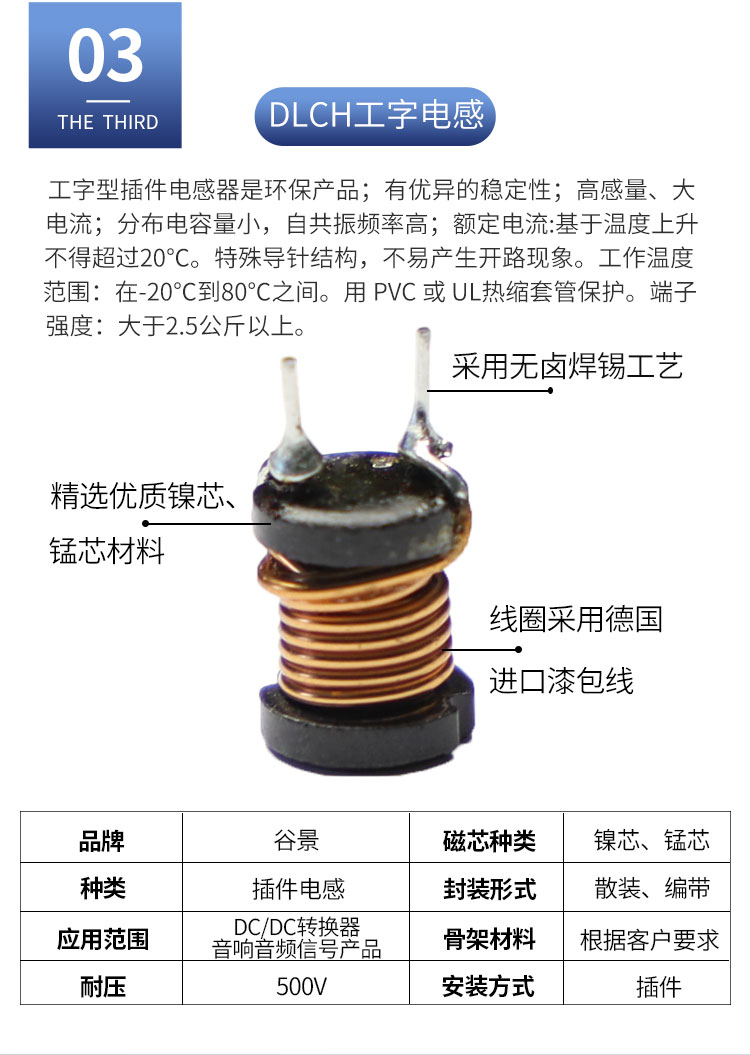 DLCP工字電感:尺寸:10.5*9.5-10.8*14.5;感量:10uH-820uH;精度:K級(±10%)、M級(±20%)、N級(±30%);電流量:0.078A-4.5A;特點:高感量,大電流;適用于:電腦、電力設(shè)備、DC/DC轉(zhuǎn)換等。詳情咨詢:0512-65368862。 DLCP電感,DLCP工字電感,工字屏蔽電感,杭州DLCP工字電感,上海DLCP工字電感,南京DLCP工字電感,無錫DLCP工字電感,浙江DLCP工字電感,寧波DLCP工字電感,常州DLCP工字電感,蘇州DLCP工字電感