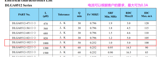 客戶原先使用的是B82144A2105J色環(huán)電感,這款電感對應(yīng)谷景的DLGA0512-102JTB,在參數(shù)上,TDK的電流只能做到0.2A,谷景的可以做到0.3A。
